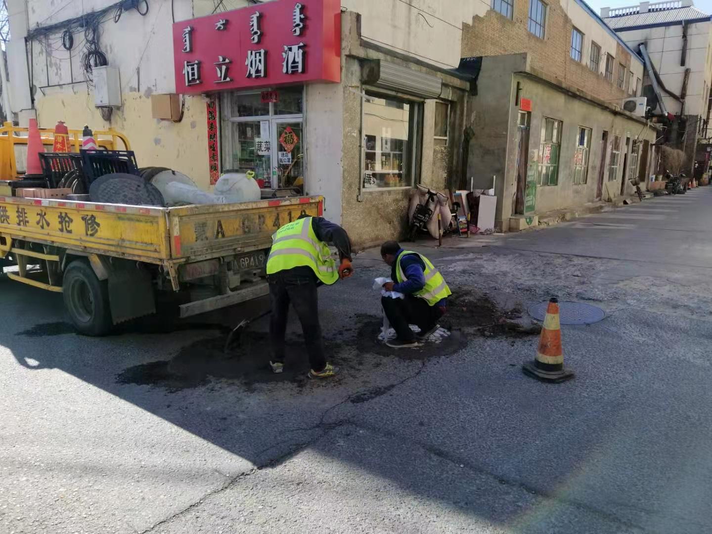 2021年牛年春节期间,呼和浩特市力派物业值班人员每天对所辖小区进行巡视,对防火、防盗、出行、防疫等工作进行重点排查。2月27日发现赛罕区乌兰察布东路街道华景园小区门口主干道路面及井盖破损,严重影响居民出行,并存在较大安全隐患。物业工作人员立即与供排水公司取得联系,并配合供排水公司维修人员对井口及破损路面进行了修复。